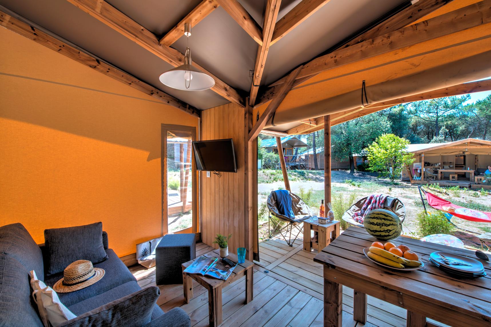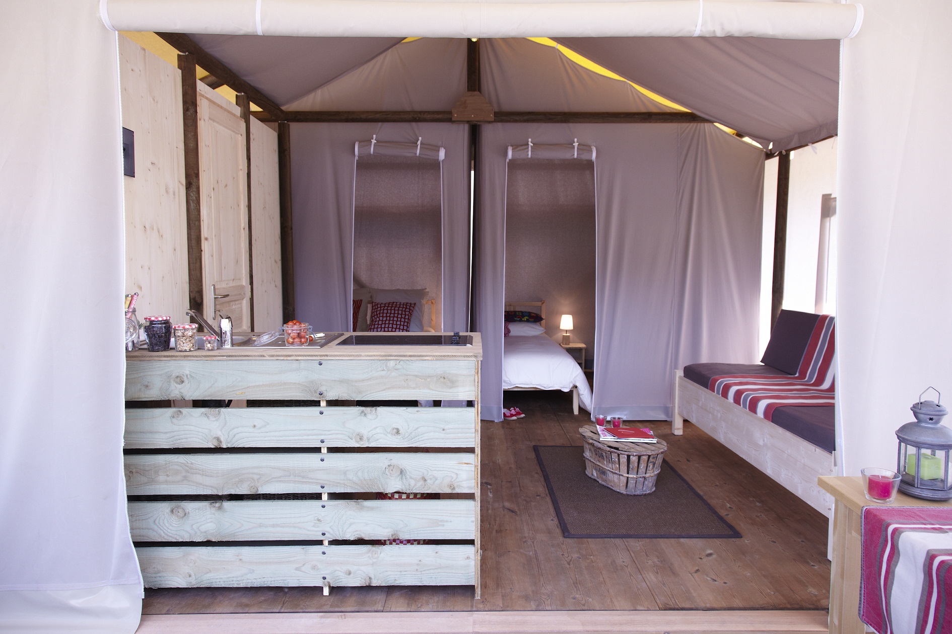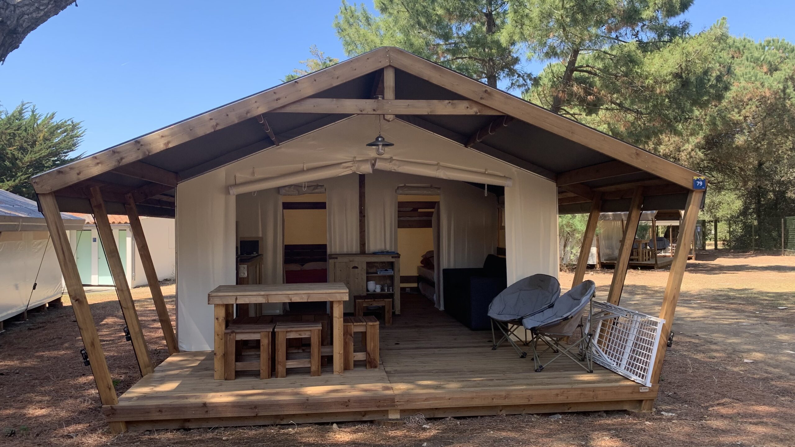 Choisissez nos hébergements toilés pour un séjour atypique sur la Flotte-en-Ré et profitez d’une immense pièce de vie à la fois intérieure et extérieure sans oublier sa terrasse couverte idéale, pour des vacances en plein air.