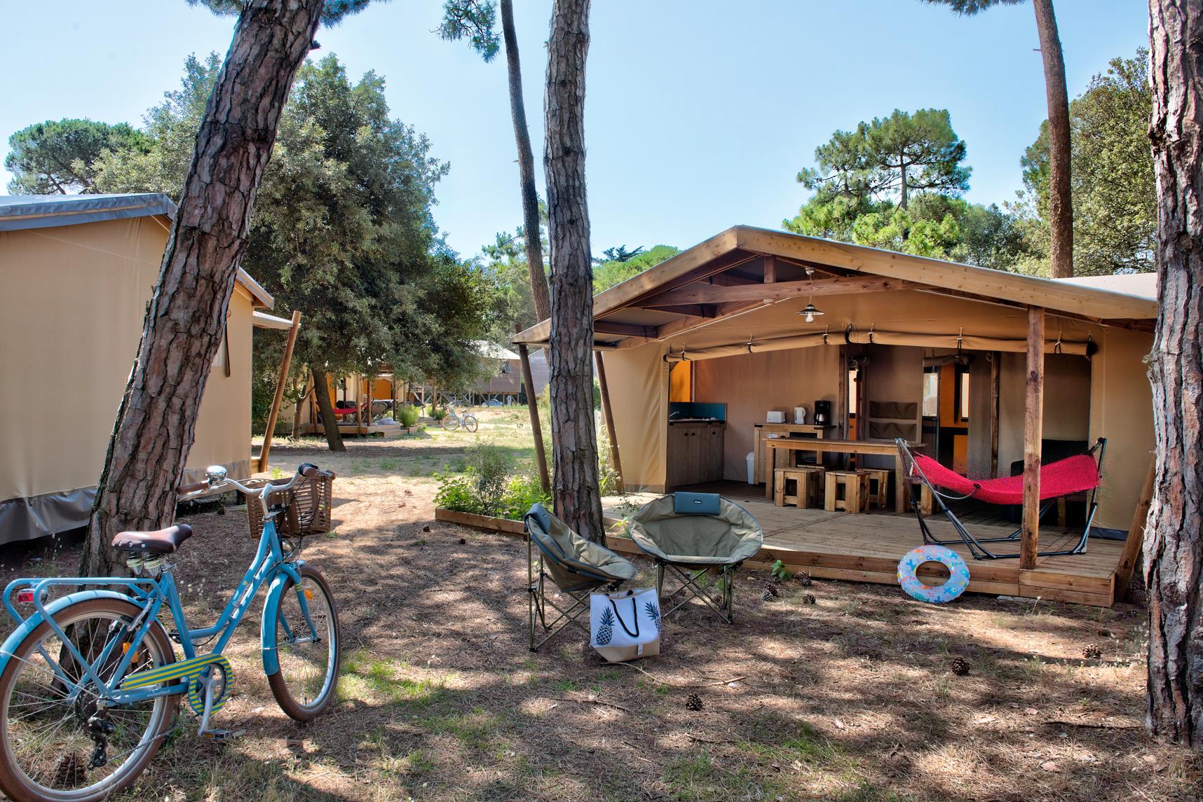 Offrez-vous un séjour atypique pour vos vacances familiales en camping à l’île de Ré. Grâce à nos grandes tentes aménagées de plain-pied Freeflower ou à nos cabanes toilées sur pilotis, vivez des vacances glamping en pleine nature à petit prix en bénéficiant de nos offres promotionnelles à partir de 239€ la semaine en basse saison. Ou préférez le confort optimal de nos récentes cabanes Cotton avec télévision de plain-pied.