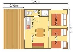 Envie de vacances au plus près de la nature en tout confort? Notre spacieuse Sweet Flower toute équipée de 43m2 pour 4/5 personnes avec 2 chambres (2 lits simples 90 x 190 cm, 1 lit 160 x 200 cm) sur pilotis avec son grand séjour de 20m2 composé d’un grand retour bar et d’un mini four est la réponse à votre envie ! Vous vivrez un séjour surélevé dans la nature qui vous procurera une expérience chic et insolite en camping.