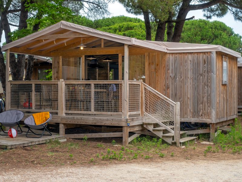 Son confort, son grand séjour ouvert, sa terrasse couverte ainsi que son ambiance chalet vous feront tomber sous le charme de notre cabane toute équipée.